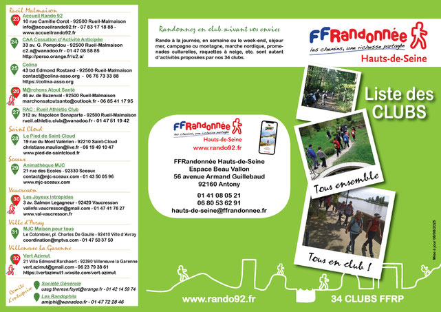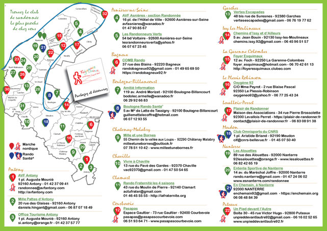 En vert : tous les clubs de randonnée des Hauts-de-Seine.